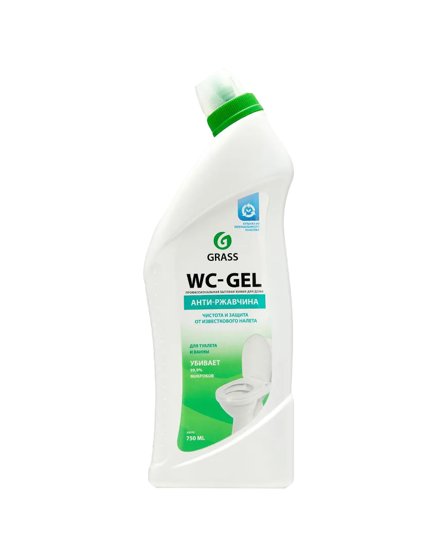Средство для ванн и туалета «Grass WC-gel» 750 мл — гелеобразный кислотный очиститель для унитазов, фаянса, кафеля, раковин и сантехники от налёта и ржавчины.