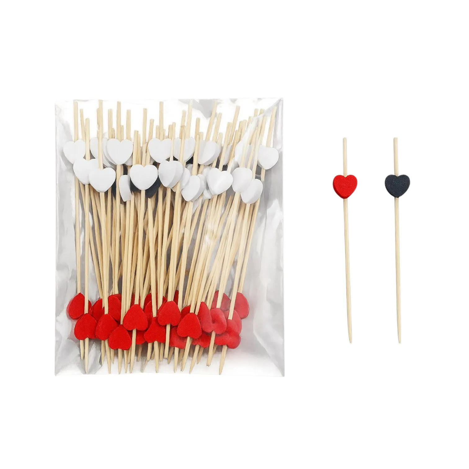 —пика бамбук Сердца (красное, черное, белое) 12 см/100