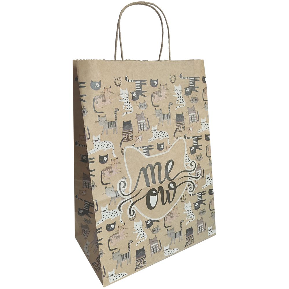 сумка бум. крафт 35х26х15 с круч. ручками Мяу *
