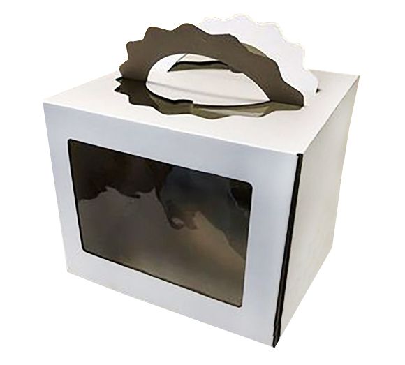 Коробка для торта. Белая коробка для торта надежно защитит десерт от воздействия влаги и воздуха. Кондитерское изделие под картонной крышкой не высохнет и не испачкается. Коробка для тортов с окном для демонстрации продукции. Плотно и надежно закрывается, тем самым сохраняя аккуратный внешний вид торта и позволяя транспортировать готовое изделие без повреждений. Такая упаковка позволит в целости и сохранности доставить десерты в магазины или донести от кондитерской до дома. Удобные ручки упрощают переноску. Прочная картонная коробка надежно защитит торт от деформации, контакта с пылью и влагой, неприятных запахов во время транспортировки и хранения.