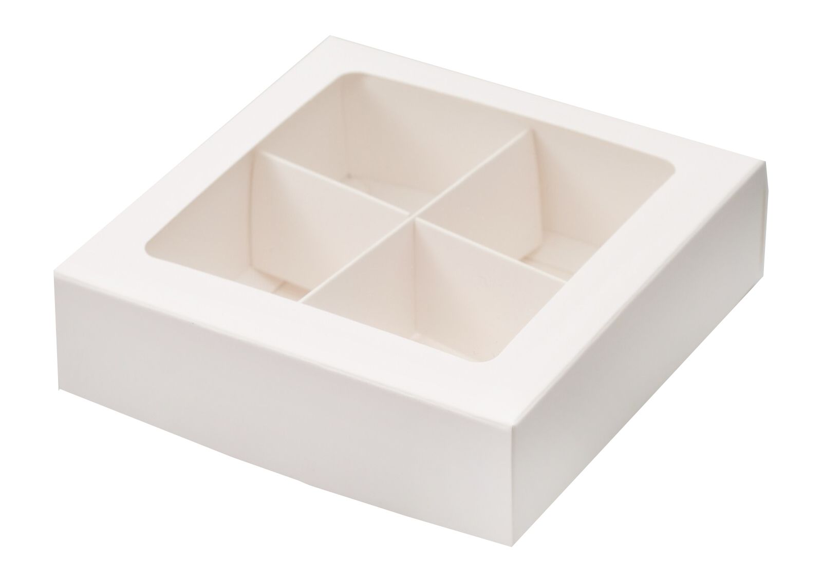 —коробка бум. 120х120х30 для 4 конфет белая прозрачное окно/разделители