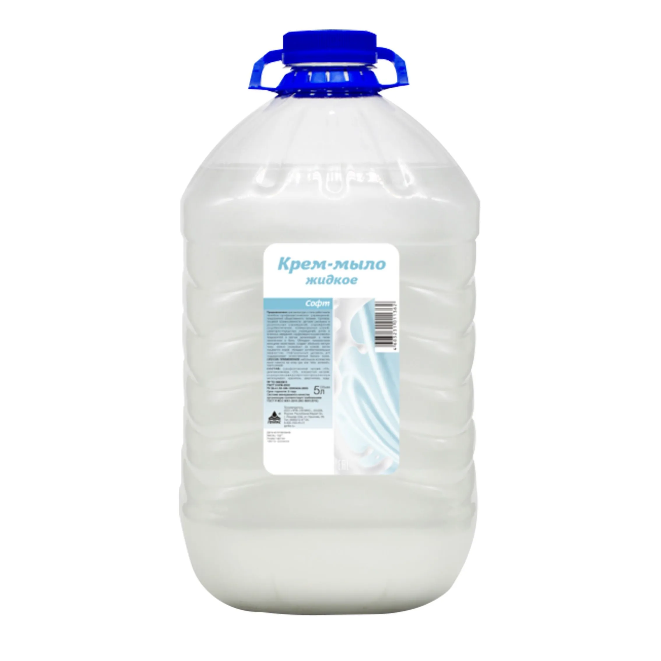 Жидкое крем-мыло «Софт» (НИКА) 5 л — мягкое высокопенное мыло для рук и тела с нейтральным pH и антибактериальным эффектом, предназначенное для бережного очищения кожи в быту и на объектах с высокой проходимостью.