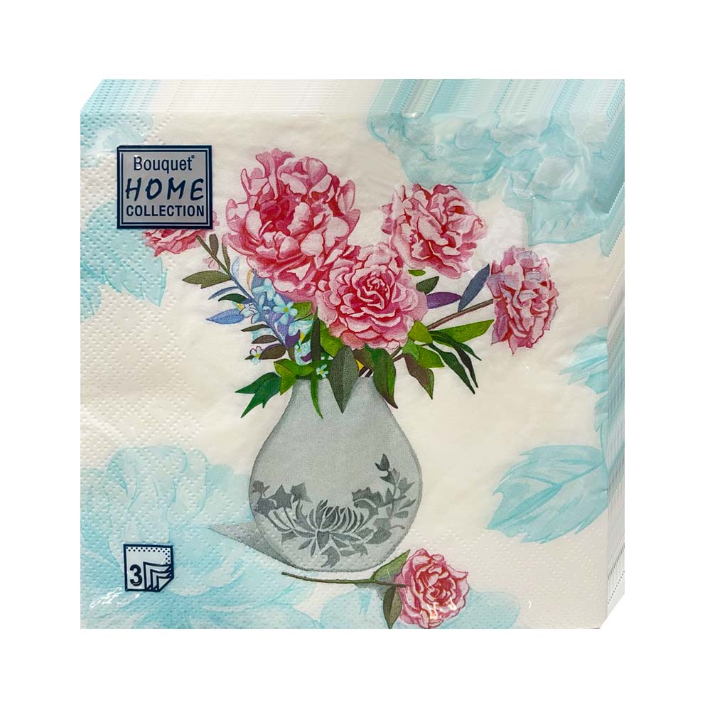 —салфетки 3-сл 33х33 АРТ БУКЕТ Ваза с пионами/20