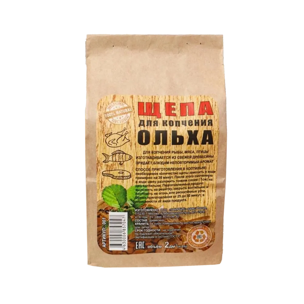 Щепа "Ольха" изготовлена из свежей сортовой древесины, прошедшей специальную обработку. Ее можно использовать для копчения в коптильнях, на гриле, мангале или на открытом огне.