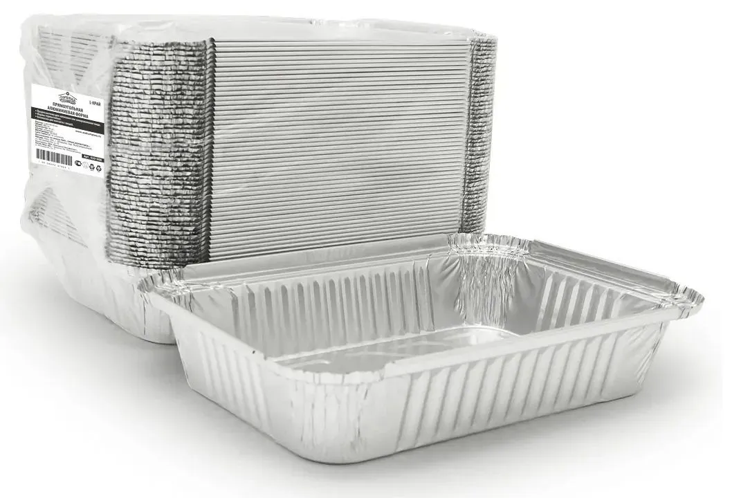 Алюминиевый контейнер  для заморозки, хранения, транспортировки и приготовления продукта. Выдерживает температурный диапазон от -40С до + 280С, подходит для использования в микроволновых печах и духовых шкафах. Размер 220х150 мм, высота 45 мм