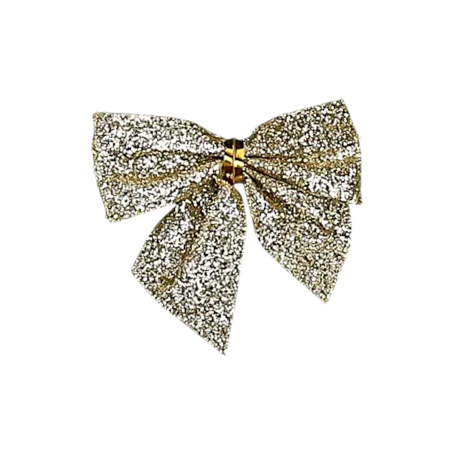 Бантик с блеском прекрасно впишется в любой интерьер, добавляя волшебства и радости. Он создаст атмосферу праздника и подарит уют вашему дому. Украшение выполнено из текстильного материала золотого цвета, что придает ему особую изысканность.